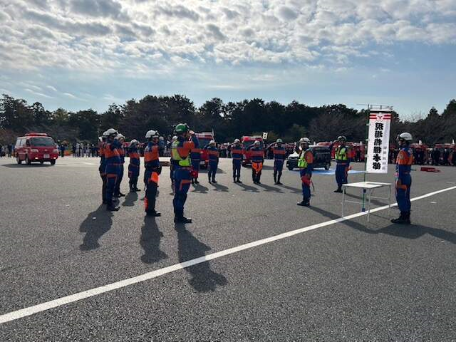 本年度は、震災時を想定とした倒壊建物及び車両救出訓練を実施し、救助資機材取扱認定証を受けた団員が取り残された要救助者を救出するとともに、訓練礼式、一斉放水訓練では、飯能消防団の消防力を誇示することができました。