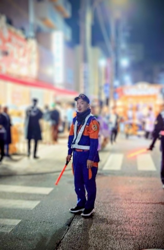 夜の巡行の警備する加藤洋平分団長