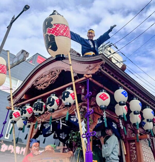 中山の山車の上では防災危機管理室 平沼氏も舵取として大活躍