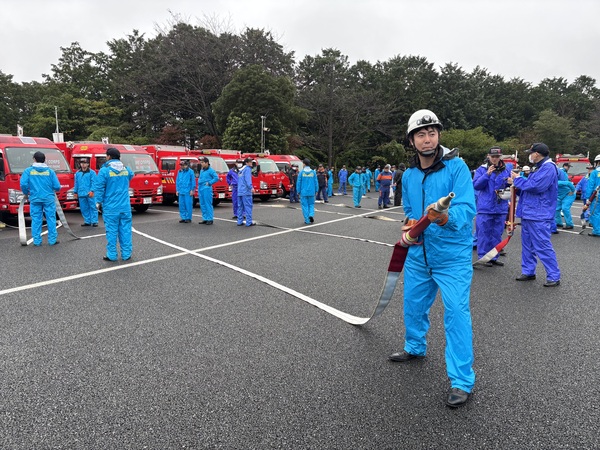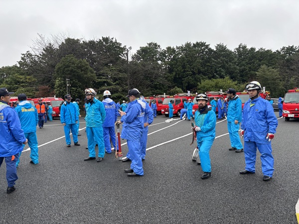 令和7年10月26日(日)飯能日高消防署屋外訓練場にて全団員訓練を行いました。当日は一時小康状態もありましたが雨具を着用して雨中での訓練となり11月22日(土)の特別点検に向けた様々な訓練を実施しました。